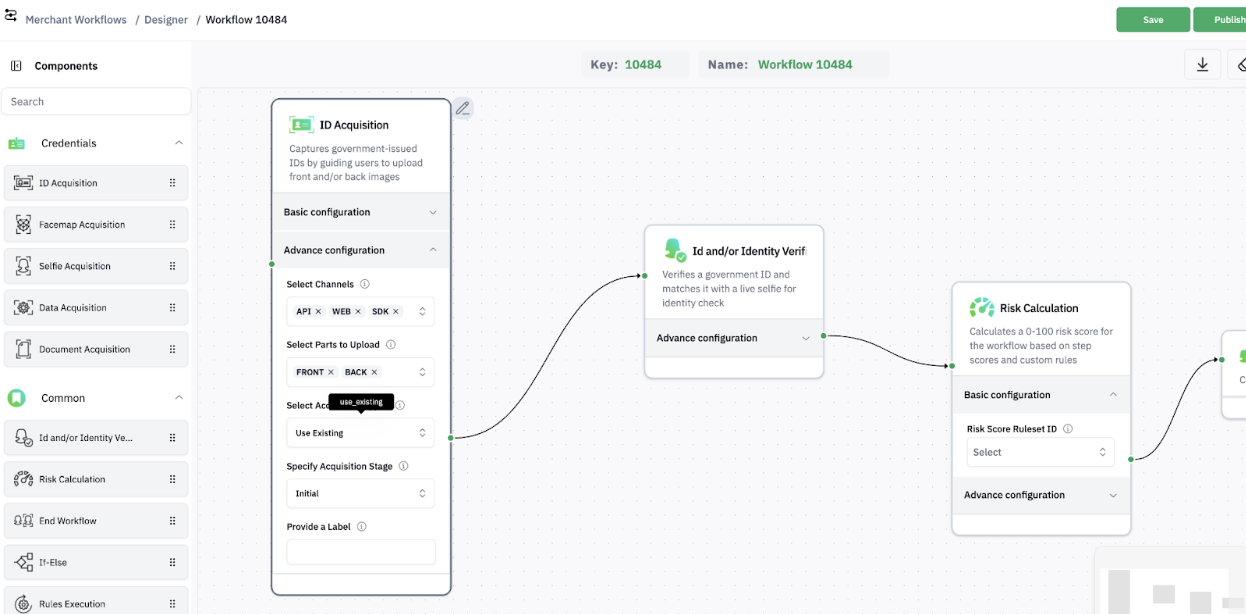 When creating a workflow in Jumio Designer, you can select whether to use an existing credential.