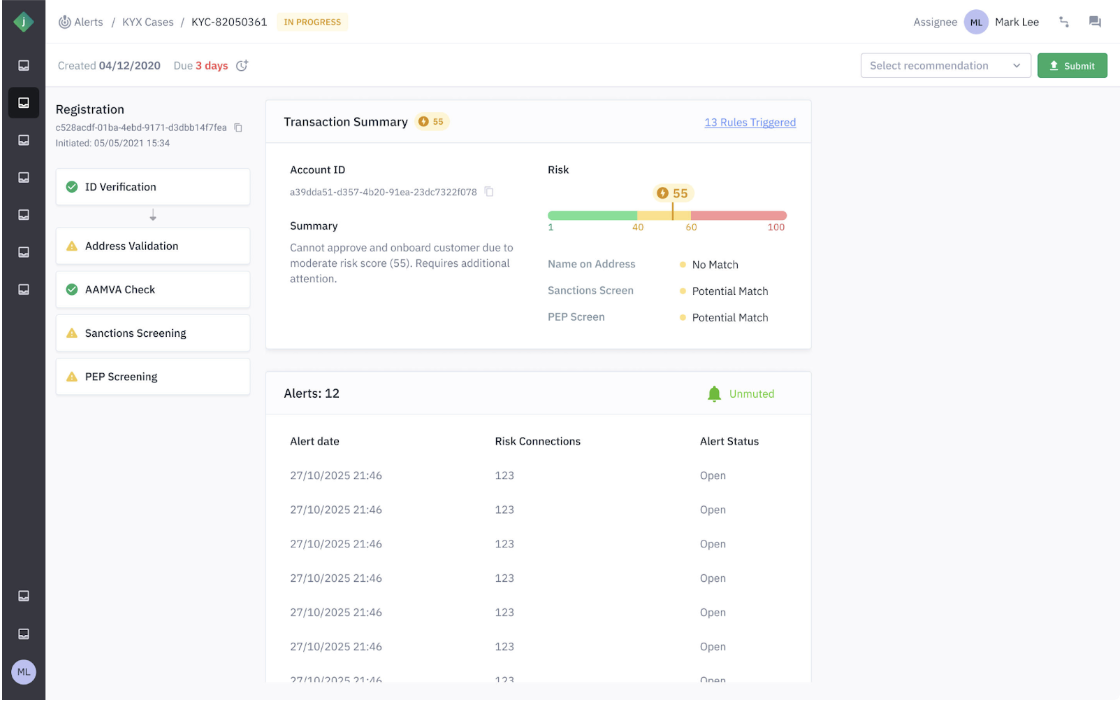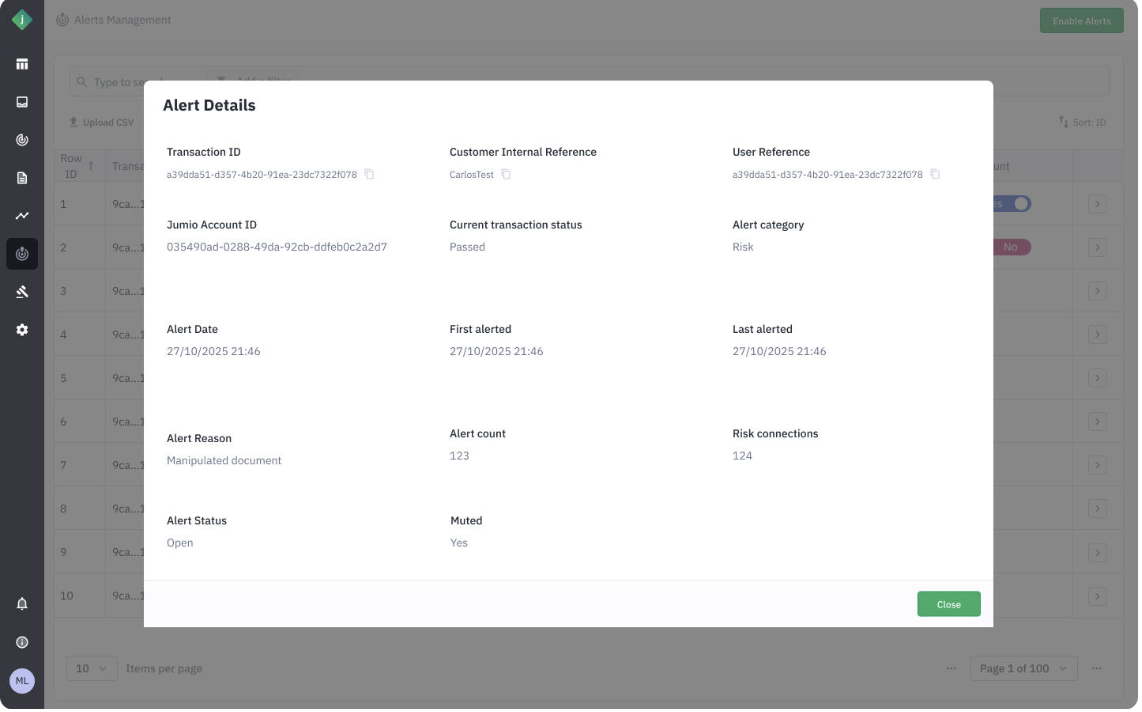 To view and manage Jumio Watch alerts directly from the Alert Management menu, click any alert in the list view to open its dedicated details page for a deeper look.