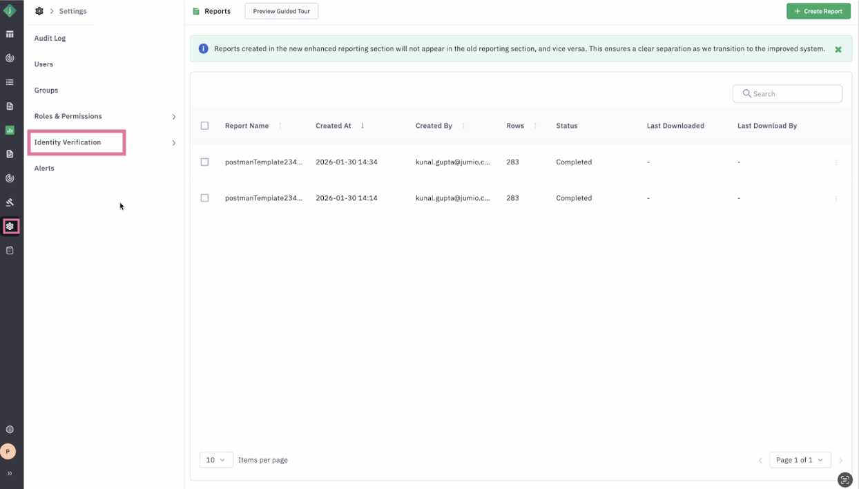 Step 1: Log in to the Jumio Portal and navigate to Settings > Identity Verification > Alerts.