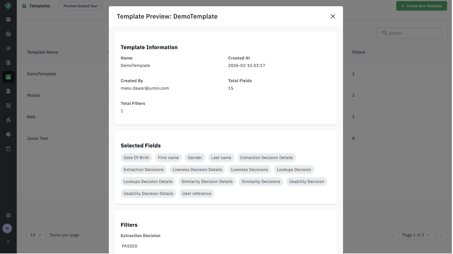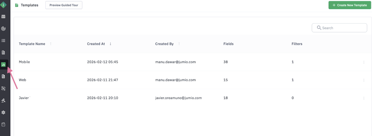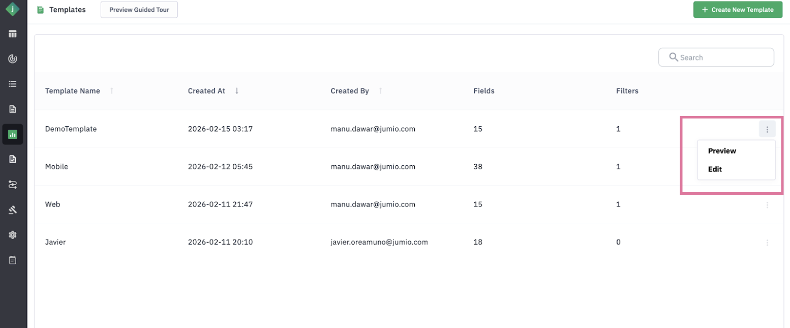 Step 6: Preview existing templates to view the list of fields and filters.