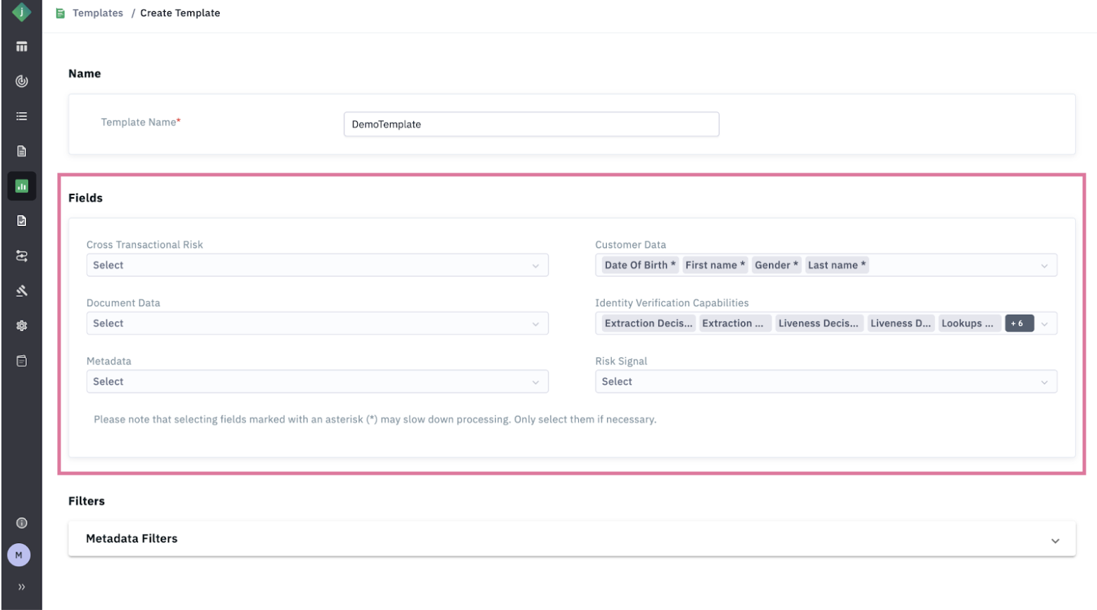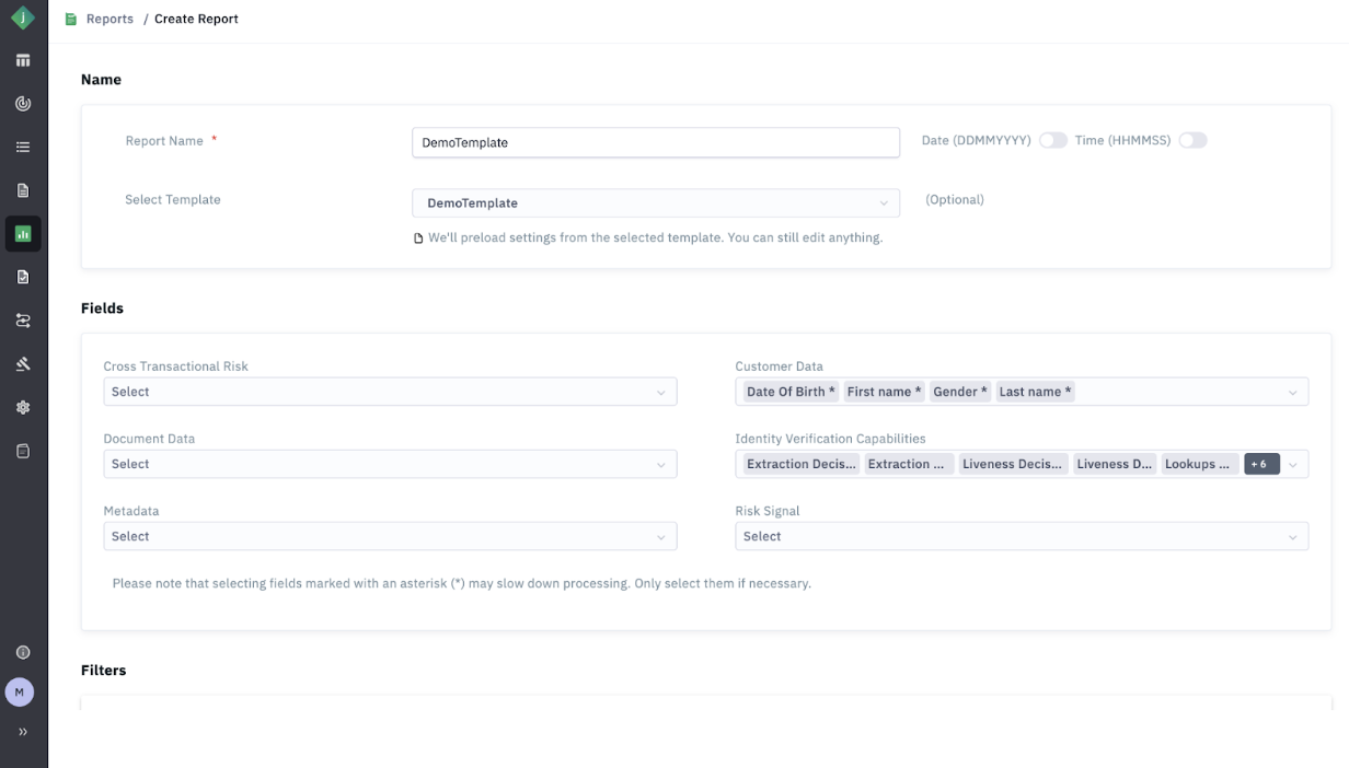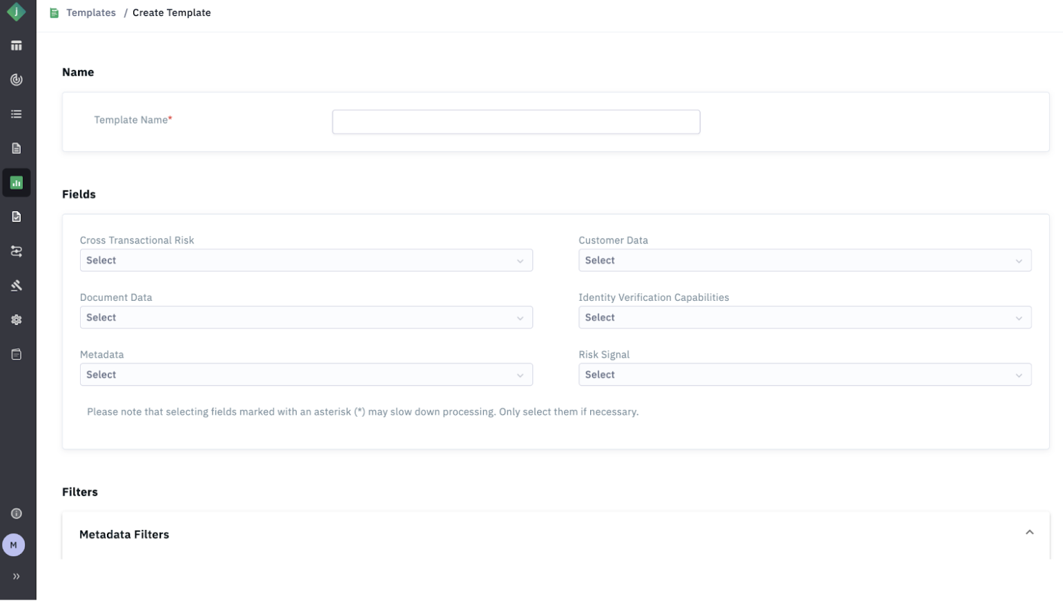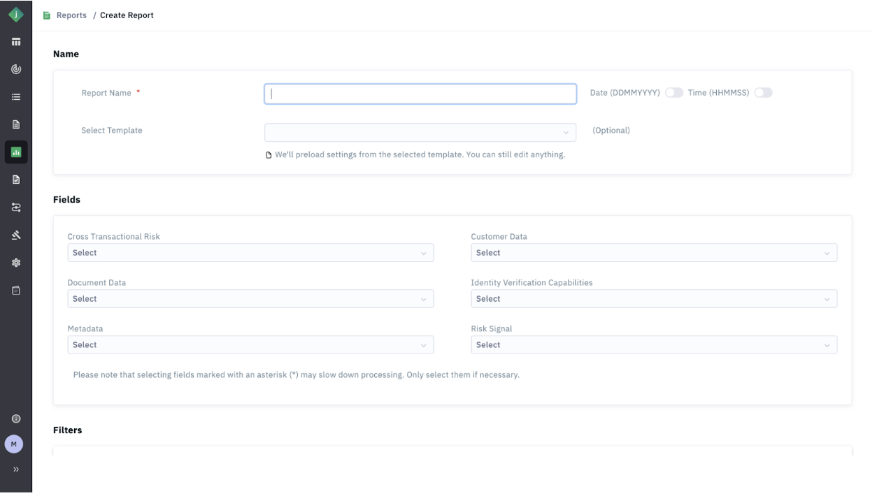 Step 4: Select a Template (optional): Choosing an existing template will automatically populate the predefined fields and filters.