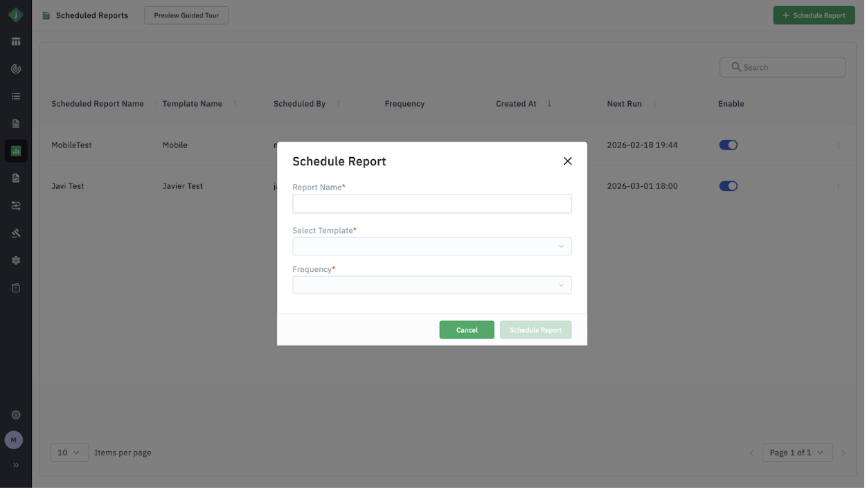 - Scheduled Reports: Users can set reports to run at predefined frequencies.