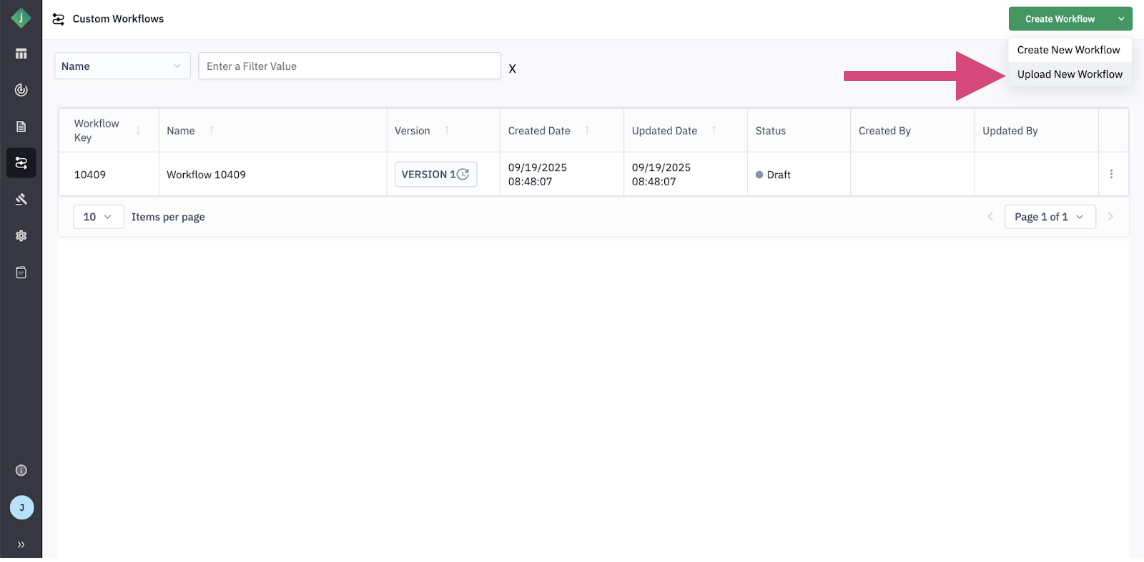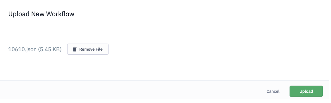 - In addition to creating a workflow from scratch, a new option, Upload Workflow, will be available.
